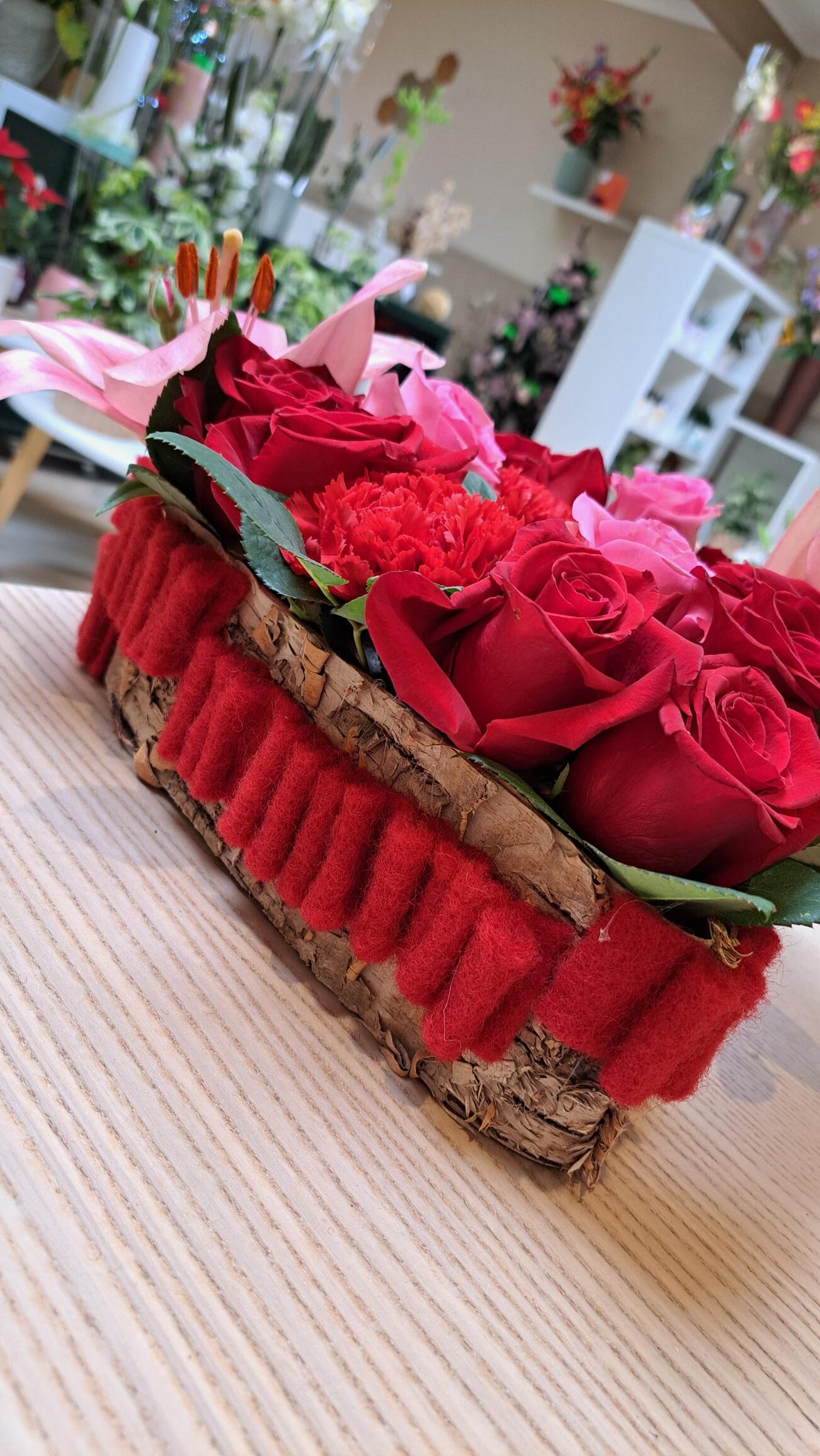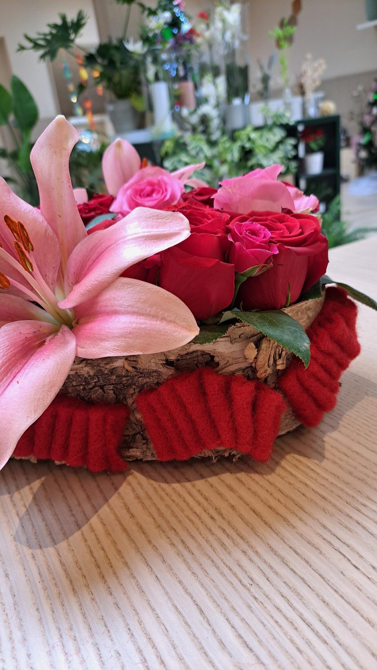 Het eerste deel van de workshop maken we het hart in schors met rode vilt, daarvoor is het lijmpistool een lange tijd in gebruik, doch voor iedereen te hanteren.